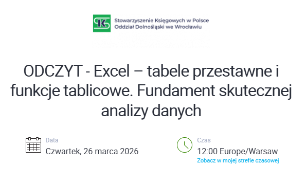 Warsztaty poświęcone nowej generacji funkcji Excela — które upraszczają pracę z danymi i pozwalają w kilku krokach robić to, co wcześniej wymagało rozbudowanych formuł. Praca na realnych przykładach z obszaru finansów i rachunkowości. Każdy uczestnik pracuje na własnym laptopie z przygotowanymi zestawami danych.