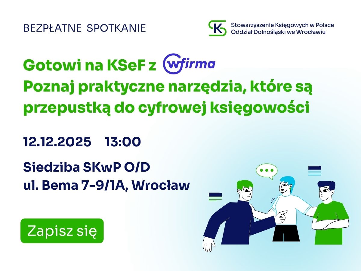 Zapraszamy na praktyczne spotkanie z ekspertami wFirma, podczas którego omówimy, jak przejść przez wdrożenie KSeF spokojnie i z korzyścią dla Twojego Biura. Skupimy się na konkretnych narzędziach i funkcjach, które zautomatyzują obieg dokumentów i zminimalizują czasochłonne ręczne operacje.