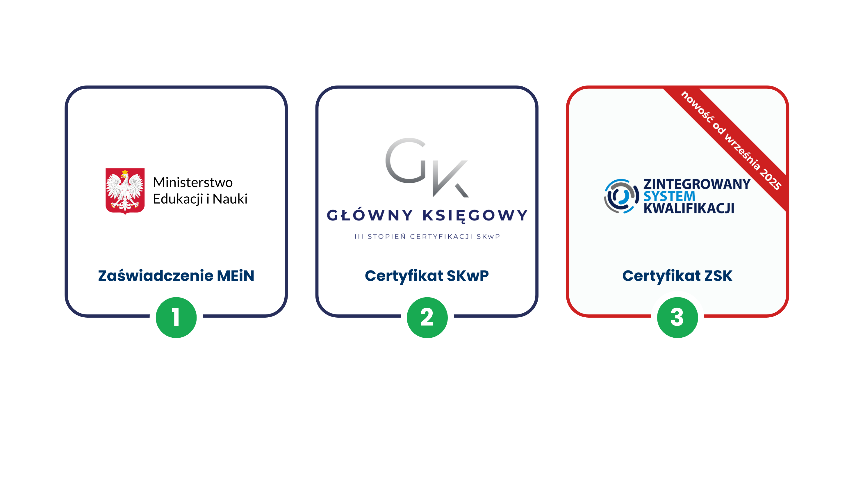 - nowość! certyfikat kwalifikacji wolnorynkowej ZSK w obszarze "Zarządzanie procesami księgowymi"